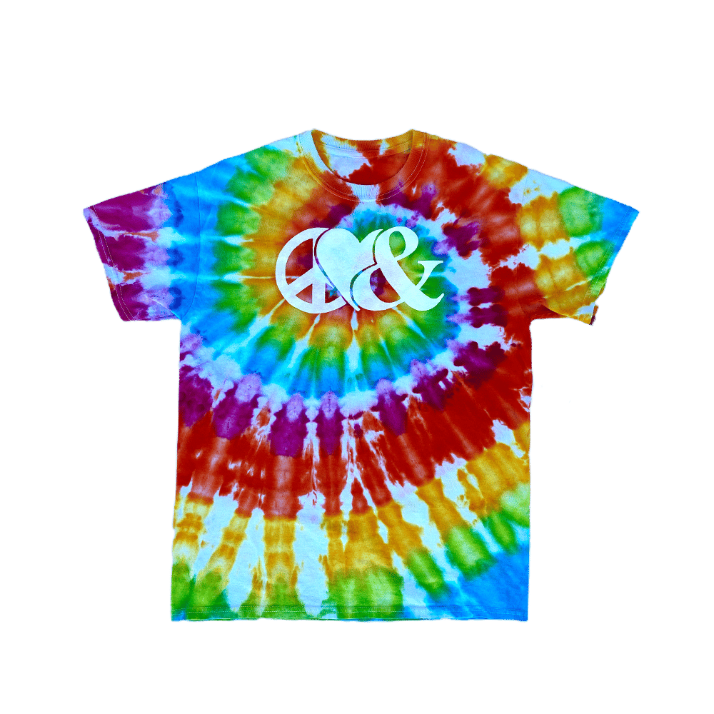 Dyed by yours truly and printed by hand with a silk screen burned in my backyard, these tees are the spirit of Peace, Love & Tie-Dye.